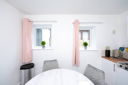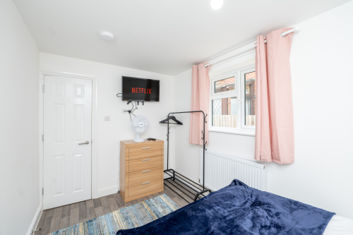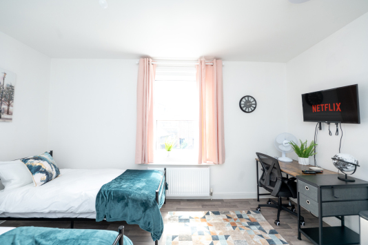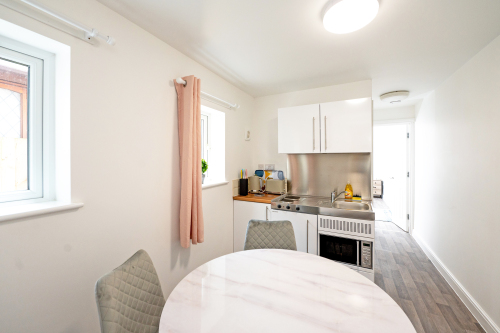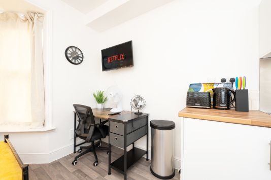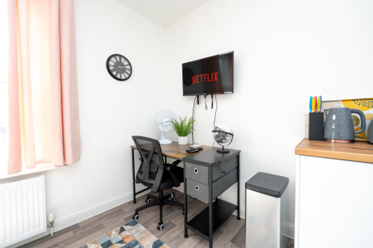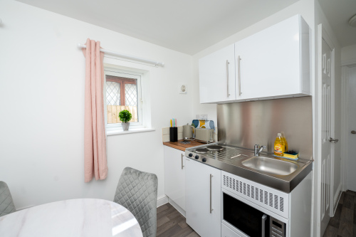Each flat contain TVs with amazon fire stick with FREEVIEW and NETFLIX. In the kitchenette we have brand new kettle, microwave with grill, stove, cupboards, crockeries and cutleries, pans and cleaning products for your use. In the shower room we offer toilet, a sink and a shower unit.